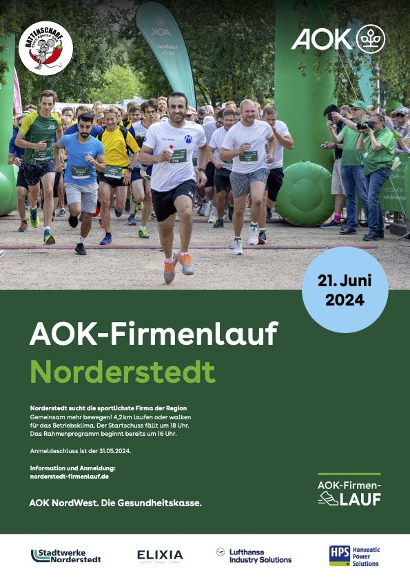 Gemeinsam mit dem Chef und den KollegenInnen für das Unternehmen einzutreten, das schafft ein starkes Gemeinschaftsgefühl. Ein willkommener Termin für unzählige Firmen und deren MitarbeiterInnen, um mit ganz viel Spaß an der Sache für ein gemeinsames Ziel zu trainieren, ist daher der AOK-Firmenlauf am Norderstedter Startparksee am 19. Juni.